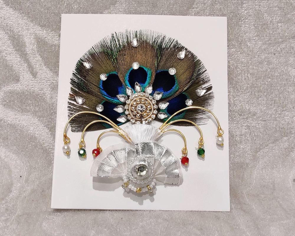 American Diamond Gokarn Colored Kule Pagh with Chandrika Jodh of 5 with Moti Work for all Swaroops of Thakorji.